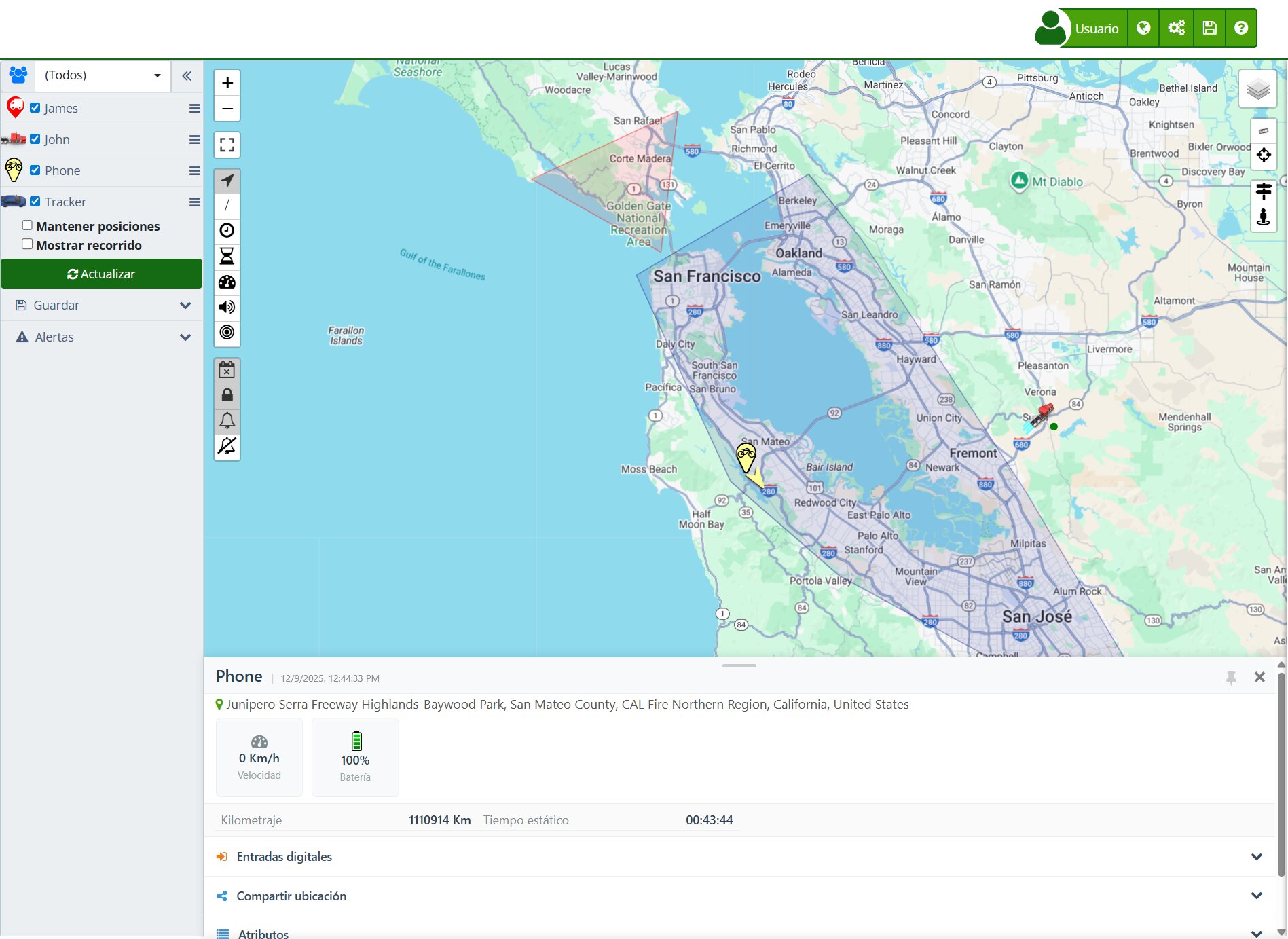 - Mapas más amplios y limpios: Hemos rediagramado el mapa por completo, reduciendo los márgenes para aprovechar cada píxel de tu pantalla. Ahora podrás visualizar tus rutas y ubicaciones en un espacio mucho más amplio, facilitando el monitoreo de flotas grandes o trayectos largos.